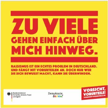 Rassismus beginnt mit Vorurteilen - und dass wir über solche Vorurteile viel zu oft einfach hinweggehen, darauf machen die grellen Aufkleber aufmerksam. Irgendwelche Vorurteile haben wir natürlich alle. Aber sie sich bewusst zu machen verhindert, dass rassistische Zuschreibungen daraus entstehen. Welches Vorurteil ist Ihnen zuletzt bewusst geworden?