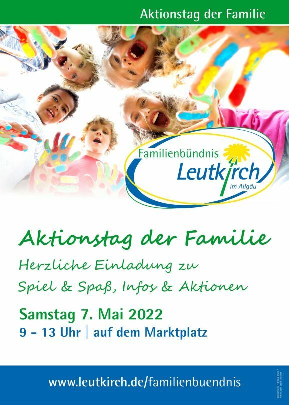 Leutkirch - Anlässlich des Internationalen Tags der Familie - Das Familienbündnis Leutkirch lädt zu verschiedenen Aktionen und einem Programm für Groß & Klein am Samstag, 7. Mai 2022, ab 9:00 Uhr in die Leutkircher Innenstadt ein.