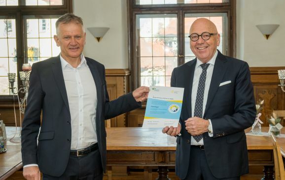 Stiftungsratsvorsitzender, Hans-Jörg Henle und Vorstandsvorsitzender Rudolf Dentler der Bürgerstiftung Leutkirch freuen sich sehr über die Auszeichnung. Dieses unabhängige Qualitätssiegel dokumentiere der Bürgerstiftung Leutkirch eine hervorragende Arbeit.