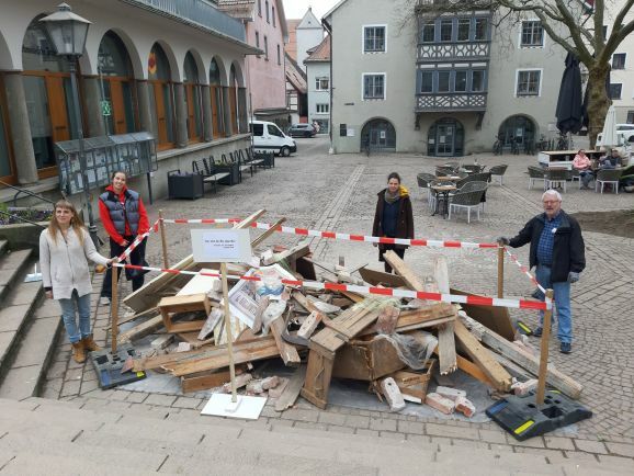 Leutkirch - Kunstinstallation auf dem Kornhausplatz erinnert an Zwangsenteignung und Abriss zu NS-Zeiten. „Hier wird für Sie abgerissen.