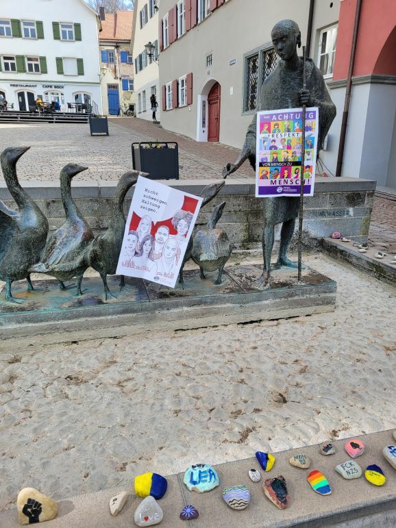 Leutkirch - Auf dem Montagsmarkt werden Steine für 100 Prozent Menschenwürde bemalt – Auch das Jugendhaus und Kindergärten bemalen Steine.