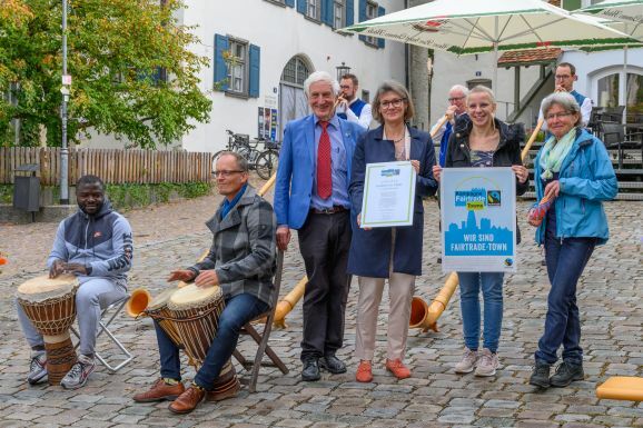 Leutkirch - Seit vergangenem Samstag, 02.10.2021, darf sich Leutkirch im Allgäu offiziell „Fairtrade-Town“ nennen. Die Auszeichnung wurde auf dem Bauernmarkt im Rahmen des KERNiG-Projekts und des Umweltkreises Leutkirch organisierten Aktionstags „Allgäu trifft Afrika“ von Manfred Holz, Fairtrade-Botschafter, an die Stadt übergeben.