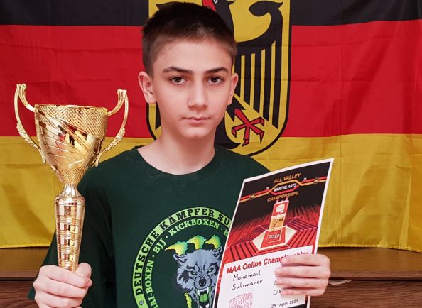 Leutkirch - Mohammad Sulimanov nahm am 23. Mai an der Kickbox-Meisterschaft (All VALLEY) in der Kick-Light-Kontakt-Disziplin der Mixed Martial Arts Association teil. Dieses Meisterschaft war ursprünglich für den 25. April geplant, wurde jedoch aufgrund der Coronavirus-Situation auf den 23. Mai verschoben.