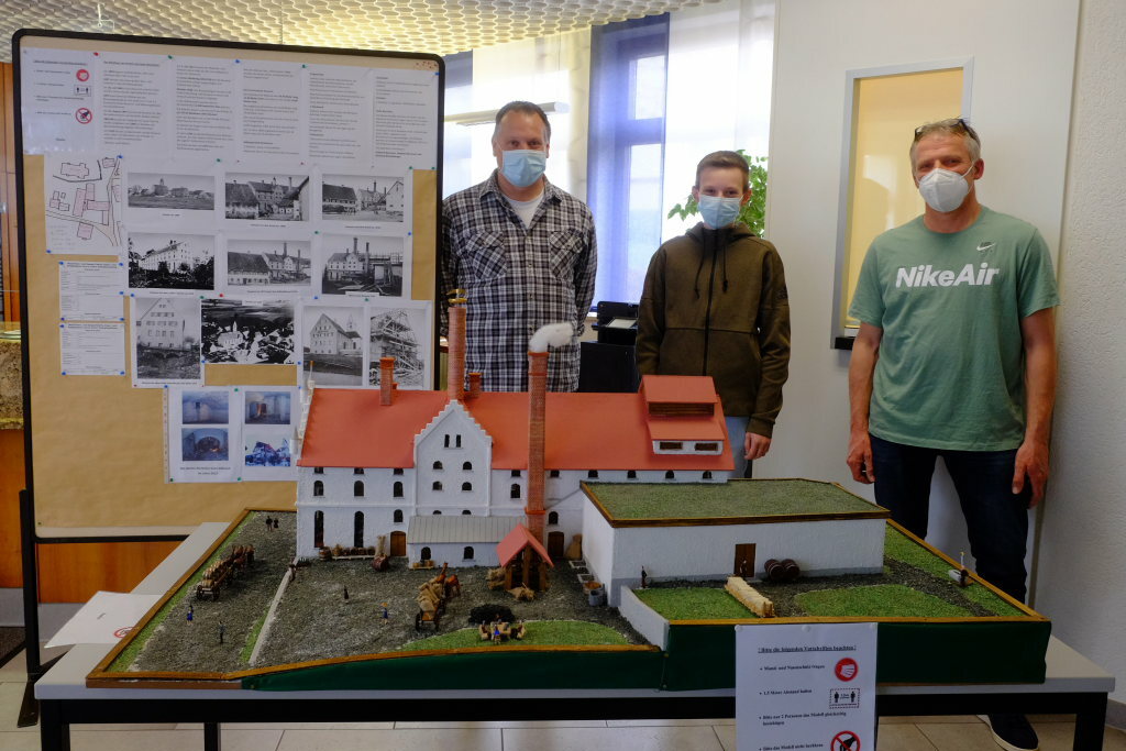 Arnach - An der Stelle wo einst die Brauerei stand und wo seit Mitte der 70er Jahre die Bankfiliale steht, kann in den nächsten Wochen das Modell der Adlerbrauerei besichtigt werden, das die drei Heimatforscher Gebhard Baumann, sein Neffe Stephan Baumann und Reinhold Bischofberger auf der Grundlage von alten Fotos im Maßstab 1:50 nachgebaut haben.