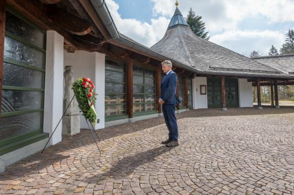 Leutkirch - Anlässlich des nationalen Gedenktages für die Verstorbenen in der Corona-Pandemie hat Oberbürgermeister Hans-Jörg Henle auf dem Waldfriedhof einen Kranz niedergelegt. In aller Stille gedachte er dort derjenigen, die aufgrund der weltweit grassierenden Krankheit verstorben sind.