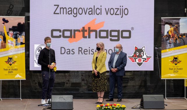Aulendorf - Einen ganz besonderen Tag erlebten die Mitarbeiter der slowenischen Carthago d.o.o. am gestrigen Donnerstag: Der slowenische Radsportstar und letztjährige Tour de France Sieger Tadej Pogačar kam persönlich ins Werk, um sein neues mobiles Basislager in Empfang zu nehmen: einen speziell gebrandeten Carthago c-compactline I 141 LE. Das flexible Premium-Reisemobil dient dem Jungstar künftig als komfortabler Rückzugsort vor, während und zwischen seinen Rennen.