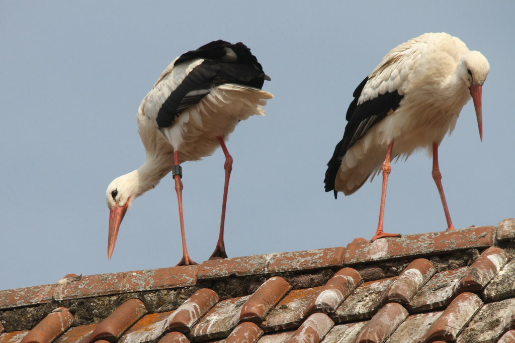Bad Wurzach (mit Bildalbum) - Während in Ziegelbach der Horst auf dem Strommast neben dem Gasthof Adler, ebenso wie dem in Dietmanns, ebenfalls auf einem Strommast gegenüber der Kirche, von den Storchenpaaren schon seit Wochen fleißig bebrütet werden, stand die Brut auf dem ältesten Bad Wurzacher Nest, dem auf der Grundschule kurzzeitig auf der Kippe. Dem Brutversuch eines vierten Nestes auf dem „Haus Schranz“ wurde behördlicherseits ein Riegel vorgeschoben.